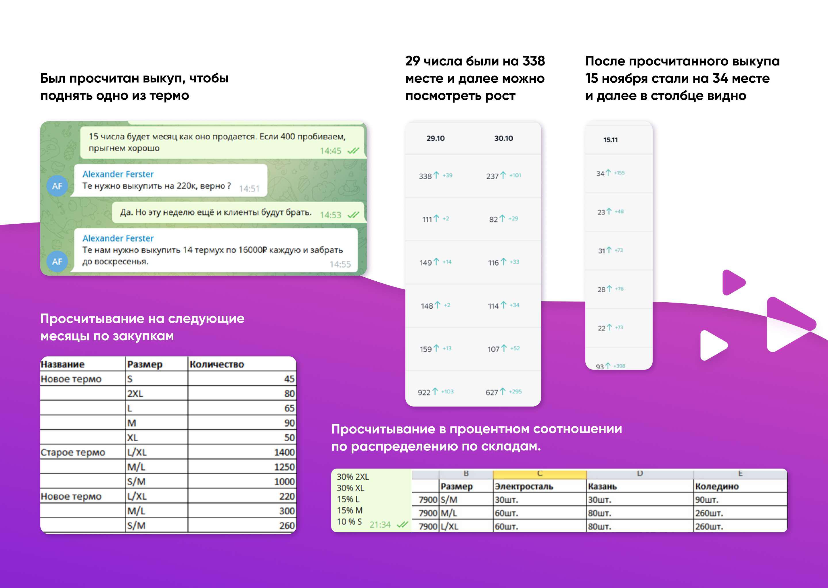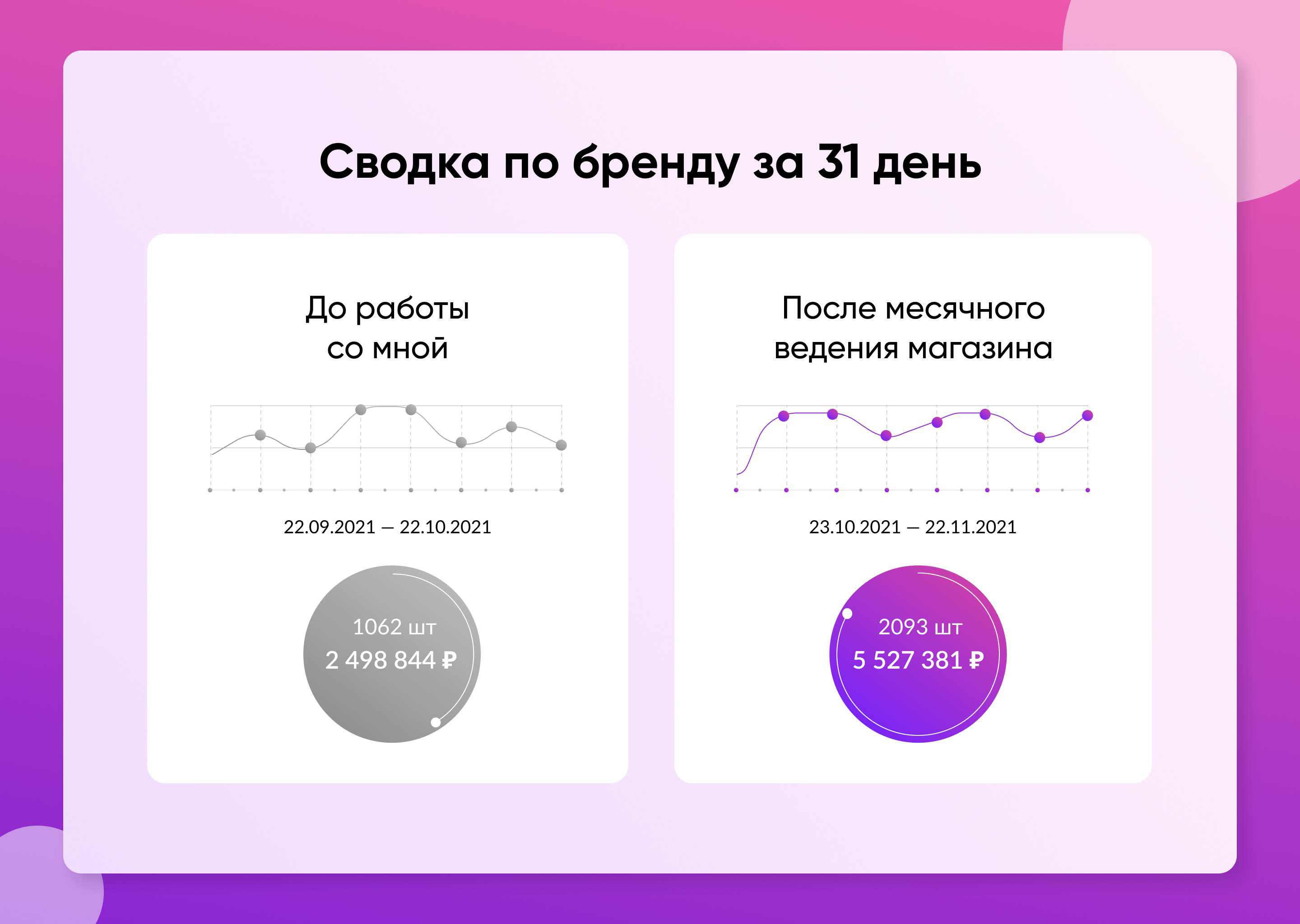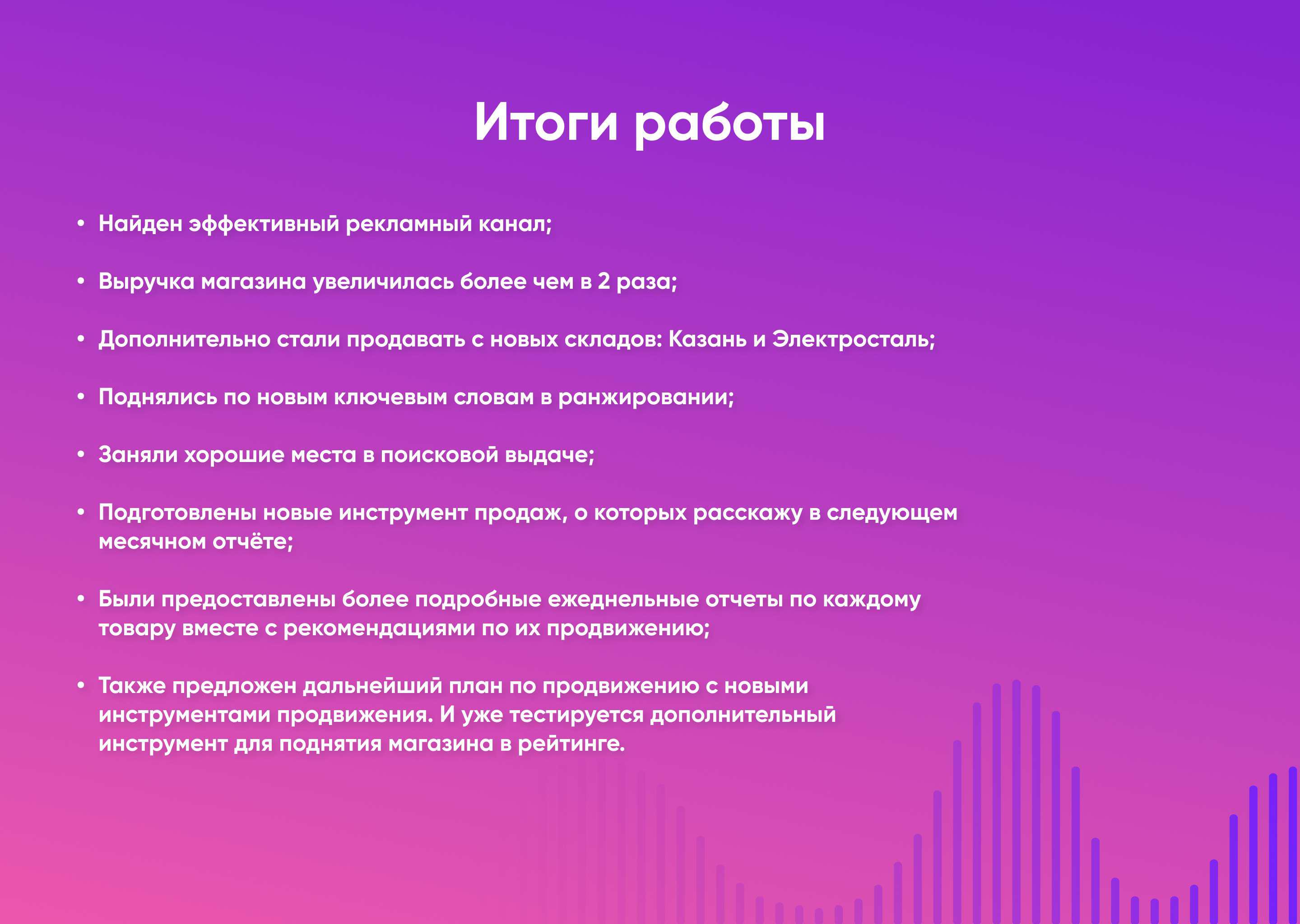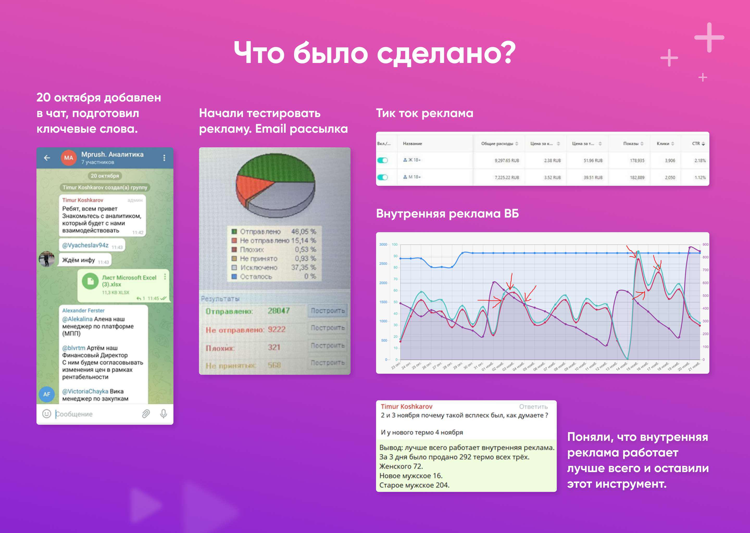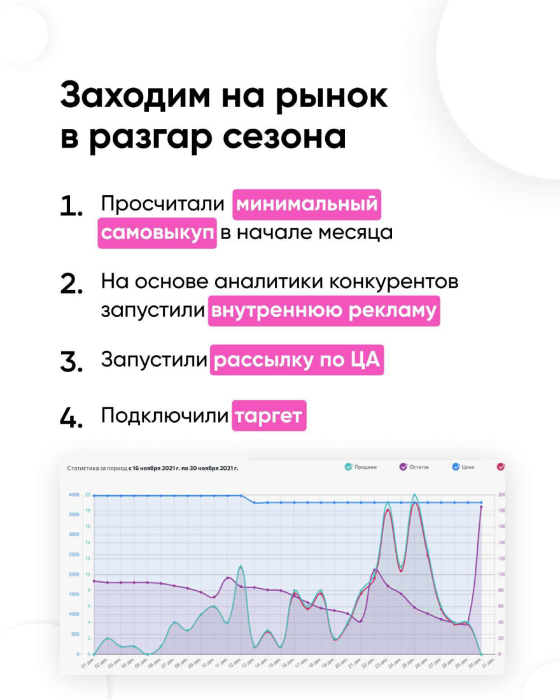 Пример кейса с сводками, задачами, процессом и итоговыми результатами продвижения товара, сделанное всё за месяц.